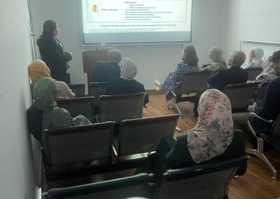 قدّمت خلال اللقاء استشارية الغدد الصم والسكري الدكتورة نهله الخواجا محاضرة بعنوان: “التكثيف العلاجي المبكر في السكري من النوع الثاني ما بعد الهيموغلوبين A1c”، سلطت فيها الضوء على أهمية التدخل المبكر وأثره في تحسين نتائج العلاج.